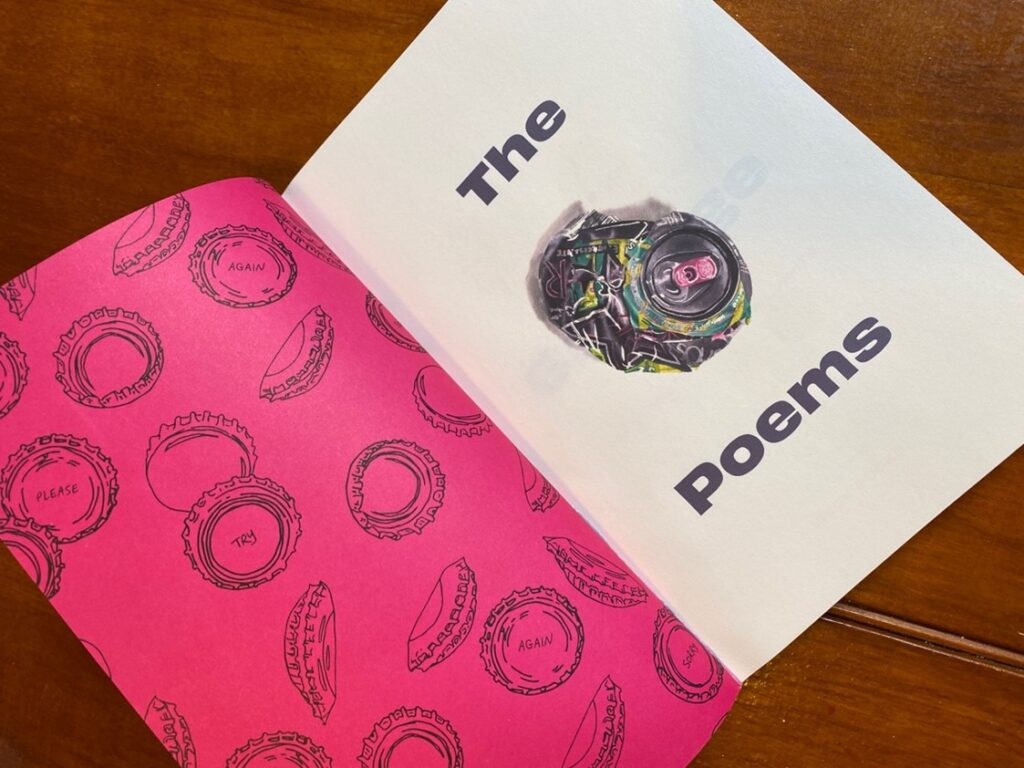 From its very first page, The Garbage Poems has a highly original design: bright pink illustrated interior flaps.